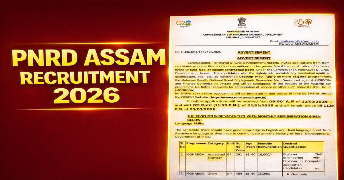 PNRD Assam Recruitment 2026: PNRD Assam Recruitment 2026 ने इस वर्ष असम में एग्रीगेटर इंजीनियर, कंप्यूटर असिस्टेंट, ग्रामीण रोजगार और....